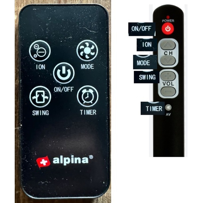 Afstandsbediening Alpina torenventilator
