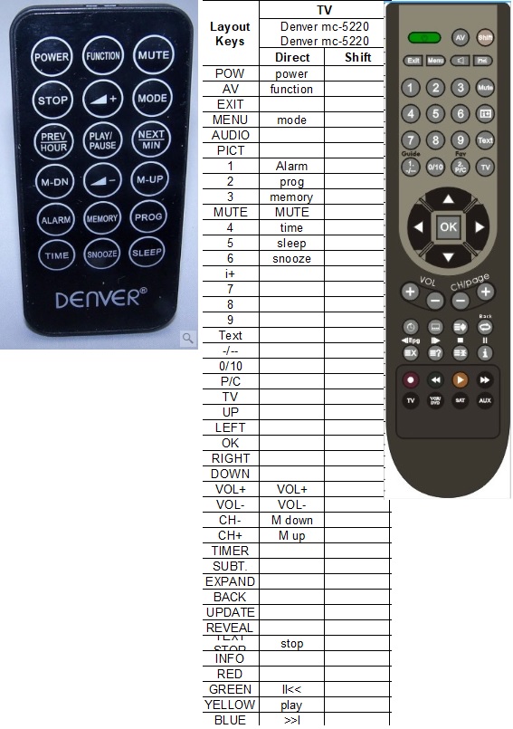 Afstandsbediening Denver mc-5220Afstandsbediening Denver mc-5220