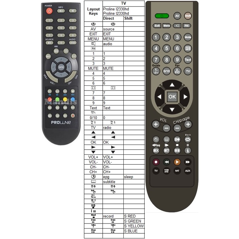Afstandsbediening Proline l2330hd l2331hd