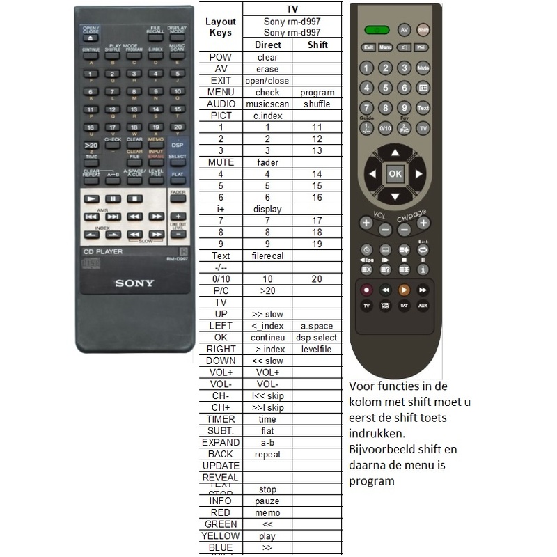 Afstandsbediening Sony rm-d997 cdp-997Afstandsbediening Sony rm-d997 cdp-997