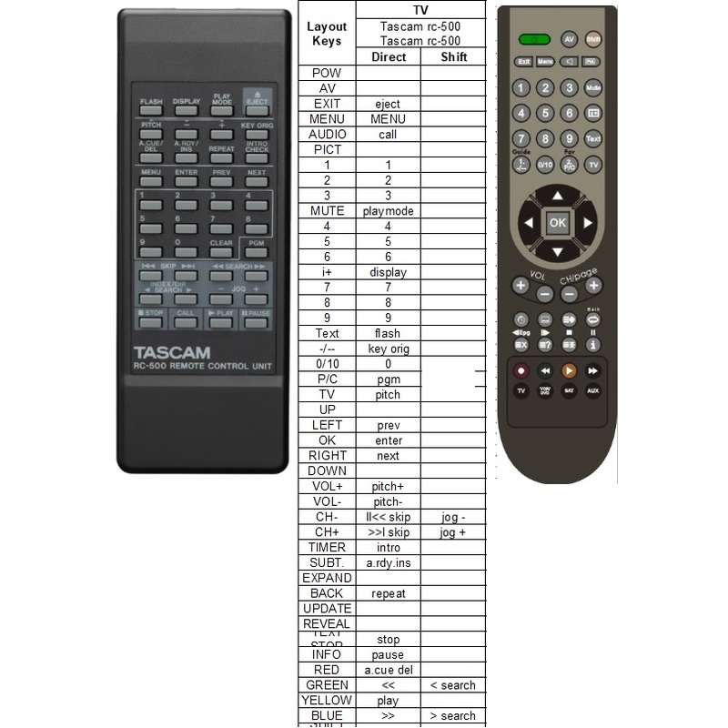 Afstandsbediening Tascam rc-500 voor de cd-500Afstandsbediening Tascam rc-500 voor de cd-500