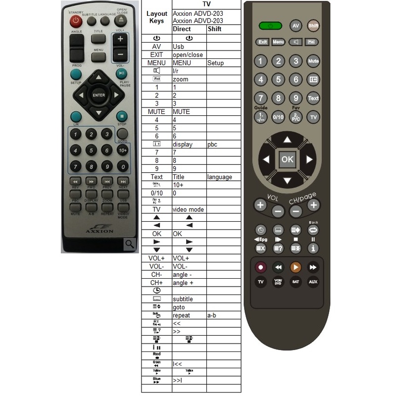 Afstandsbediening Axxion ADVD-203 DVD