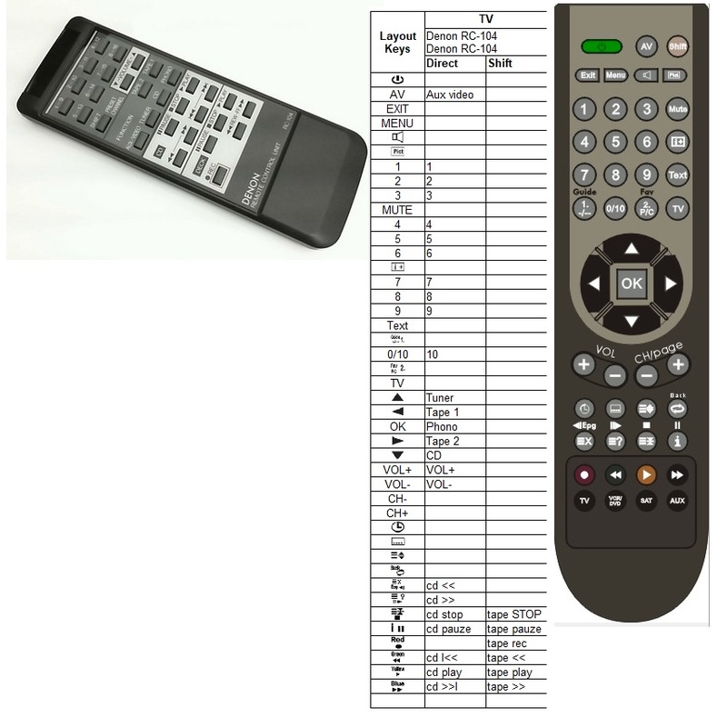Ook te gebruiken voor de Denon rc-111 DRA-425RÂ of Denon rc-117 alleen heeft de rc-104 geen aan/uit toets