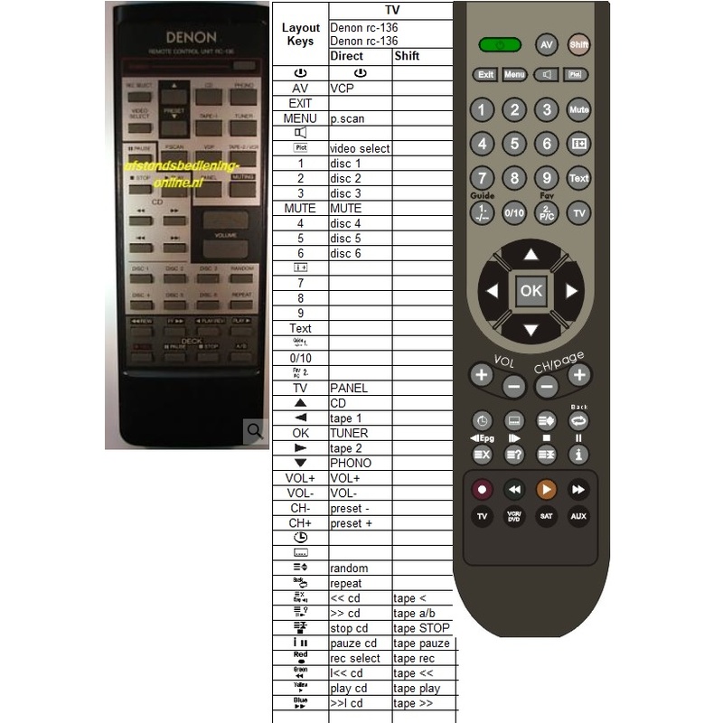 Afstandsbediening Denon rc136