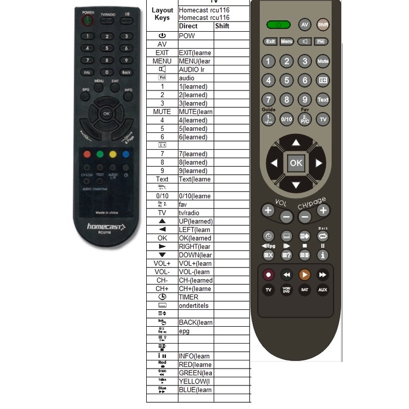 Afstandsbediening Homecast rcu116Afstandsbediening Homecast rcu116
