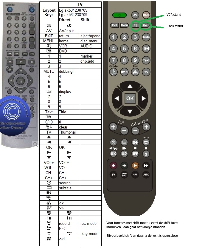 Afstandsbediening Lg dvd Vhs combi