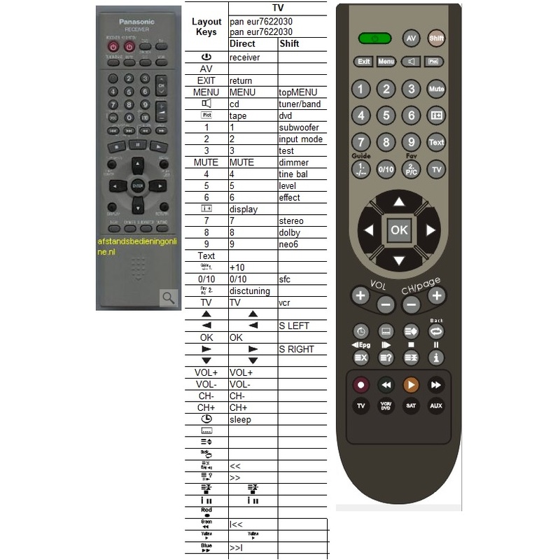 Afstandsbediening Panasonic EUR7622030