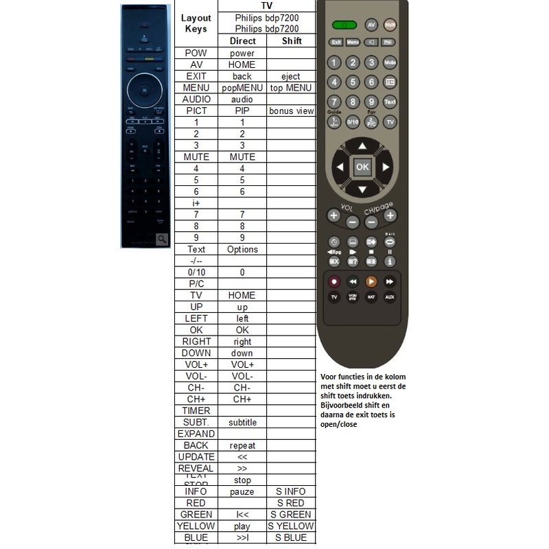 Afstandsbediening Philips bdp7200 bdp7100 BLU-RAY