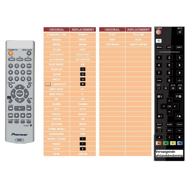 Afstandsbediening Pioneer vxx2913 vxx2914 dv-370 Prijsklasse: € 14,95 tot € 19,95Opties selecteren