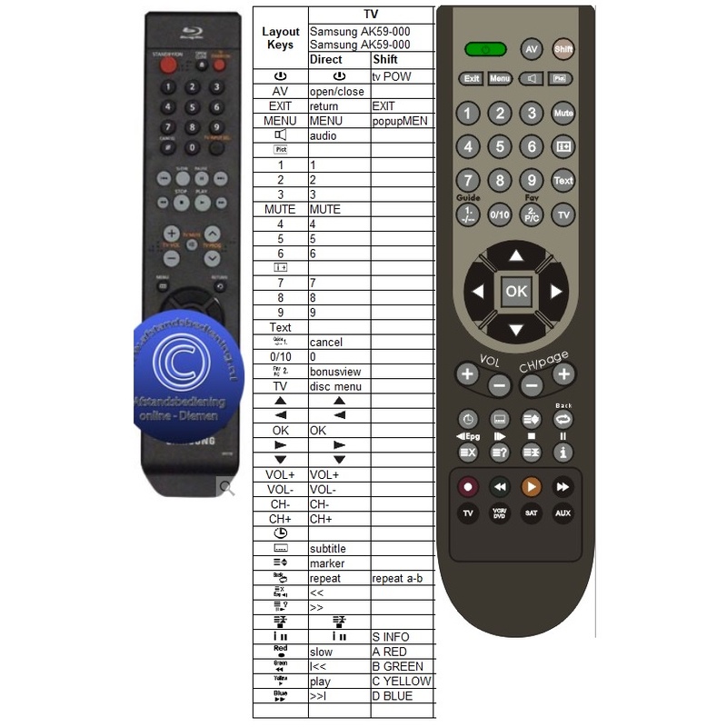 Afstandsbediening Samsung bd-p2500edc AK59-00070E